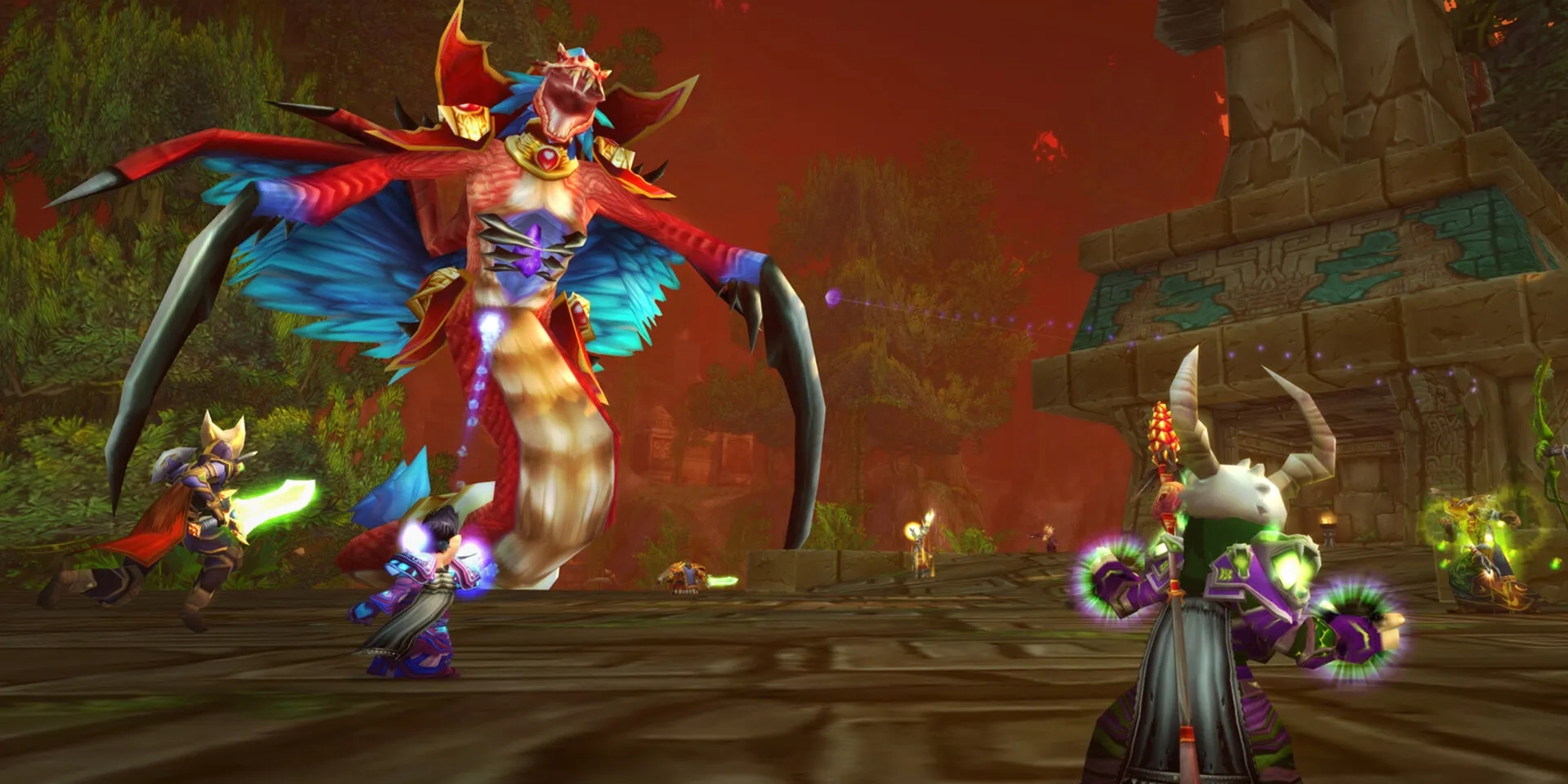Hakkar, its final boss, applied a 250–300-damage debuff called Corrupted Blood that spread to anyone nearby if they were too close together. The effect should have vanished once players left the instance, but hunters and warlocks discovered that dismissing an infected pet or companion froze the debuff-timer, and re-summoning the companion later unleashed the debuff anywhere in the world, turning a gimmick into the Corrupted Blood pandemic.
